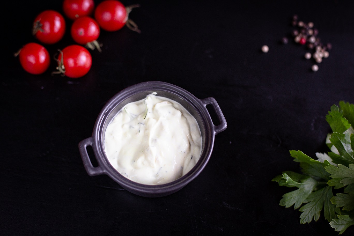 майонезный соус с маринованными огурчиками, луком и зеленью